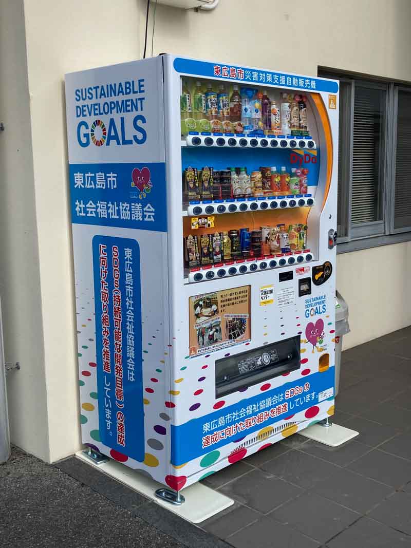 自販機の売上金の一部が市の災害対策事業に活用される『東広島市災害対策支援自動販売機』の展開を開始