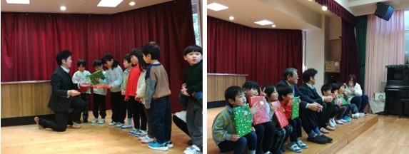 ラッピングされた絵本に園児は終始釘付けだったようで、絵本はクリスマスに開封されるということです
