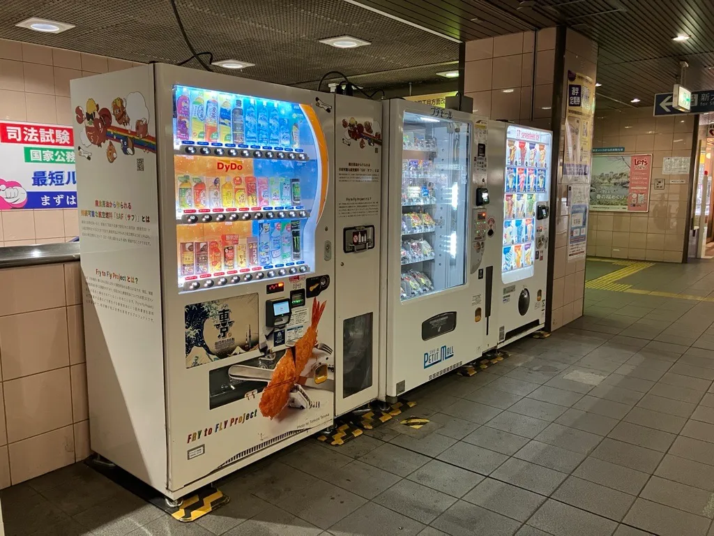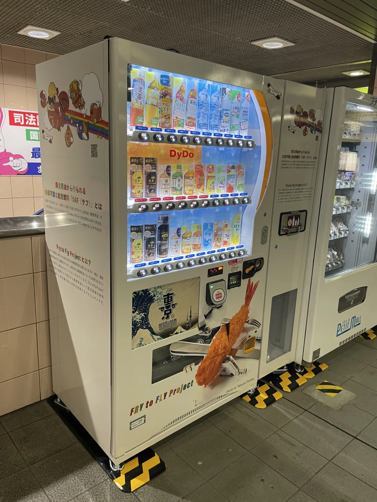 プロジェクト参画企業にもFry to Fly Projectラッピング自販機をご提案いただき、各企業様で設置していただいています。