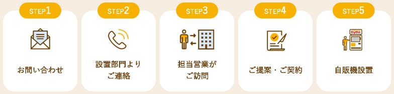 業者から連絡が入ったら、まずはご希望の場所が設置可能な場所かどうかの判断を仰ぎましょう。安全面で設置基準を満たさない、ルート車両が駐車出来ない、販売見込み本数が基準に達していないなどの理由で設置が出来ない場合もございます。問題なく設置が可能な場合、業者から提案・見積提示をしてもらいます。業者によって提案条件も変わりますので、複数社にお問い合わせをされる場合は、各業者から自社に合った最適な業者を1社選びます。