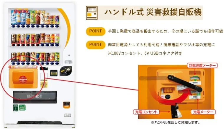 備蓄品の保管スペースを用意する必要がなく、有事の際にハンドルをまわせば携帯充電ができる点も魅力的です。