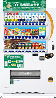 自販機の年間消費電力量に相当する再エネ指定の非化石証書を年に1度 DyDoが代理購入してCO₂の排出量を実質ゼロにします。