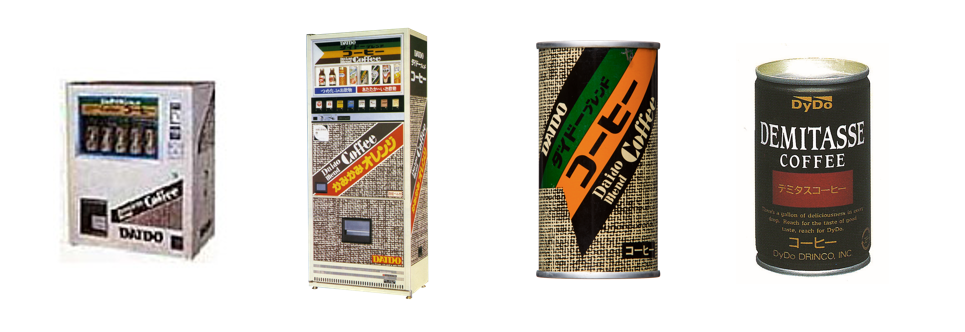 ダイドードリンコは、配置薬業をルーツにもつ大同薬品工業(現グループ会社)の新規事業として、高度経済成長期である1970年代にスタートしました。車の交通量が飛躍的に増えた時代、国道沿いのパーキングやガソリンスタンドに卓上型自販機と呼ばれる小型の自販機を設置。当時は目新しかった缶コーヒーを販売したところ、時代背景を追い風に、トラックドライバーの人気を集めました。缶コーヒーの売上は順調に伸長し、さらなる事業拡大をめざして1975年にダイドー株式会社(1984年ダイドードリンコ株式会社に商号変更)を設立。そして、現在も看板商品として受け継がれる「ダイドーブレンドコーヒー」の発売を皮切りに、「デミタスシリーズ」などこだわりの商品をお届けしてまいりました。また、時代の変遷に合わせた自動販売機を開発し、社会課題の解決に取り組んでいます。