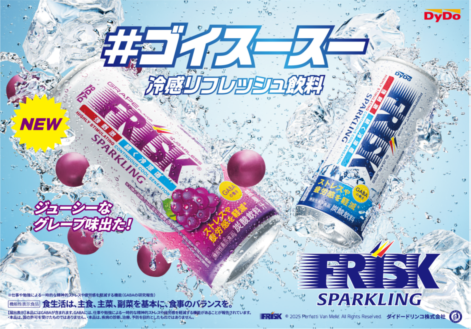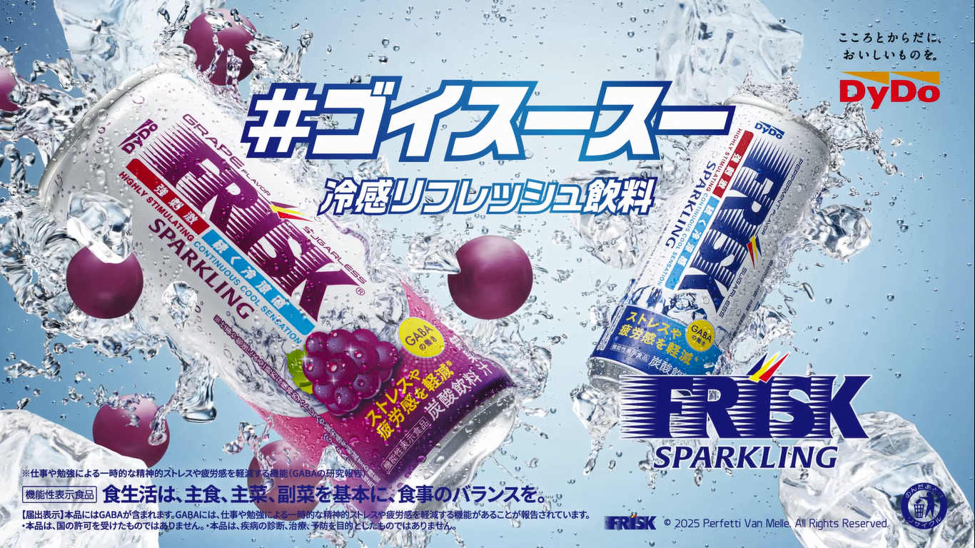 本商品の特長である「スースーする」にちなみ、お笑い芸人ダイアン 津田 篤宏さんの代表ギャグ「ゴイゴイスー」を活用した「#ゴイスースー」をプロモーションコピーとして採用し、冷感リフレッシュ飲料であるFRISK SPARKLINGシリーズのスースーする体感特徴を発信してまいります。また、SNSでのハッシュタグ「#ゴイスースー」の展開や津田さんのXアカウント(@daiantsuda)でのオリジナル動画投稿を予定しております。どうぞご視聴ください。