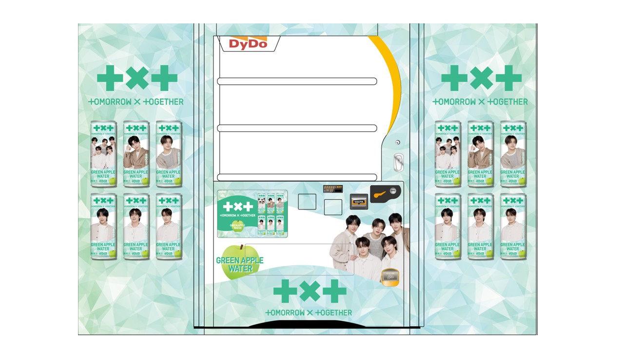 自動販売機での販売を開始しております、自販機向けデザインの「ダイドー TOMORROW X TOGETHER(トゥモローバイトゥギャザー)グリーンアップルウォーター」は、グリーンアップルの爽やかな香りとみずみずしさ、果実の甘みを感じられる味わいが特長のフレーバーウォーターで大変ご好評をいただいております。