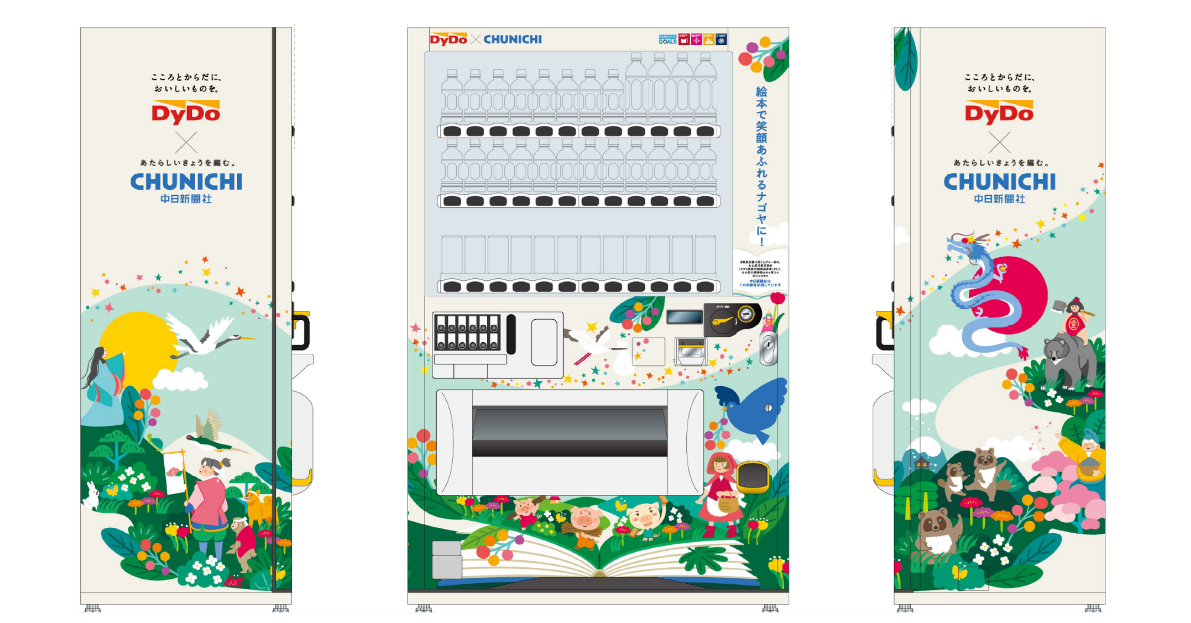 自動販売機を通じて「絵本で笑顔あふれるナゴヤに!」を支援! 「名古屋市教育基金支援自動販売機」の第1号機を中日新聞社に設置