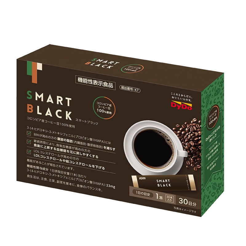 本品には3-(4-ヒドロキシ-3-メトキシフェニル)プロピオン酸(HMPA)が含まれます。3-(4-ヒドロキシ-3-メトキシフェニル)プロピオン酸(HMPA)にはBMIが高めの方の腹部の脂肪(内臓脂肪、腹部総脂肪)とウエスト周囲径を減らすこと、継続摂取により、食後血糖値が高めの方の食後に上昇する血糖値を元に戻しやすくすること、LDLコレステロールが高めの方のLDLコレステロールや総コレステロールを下げる機能があることが報告されています。